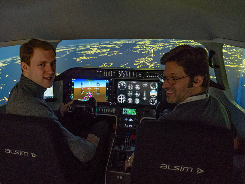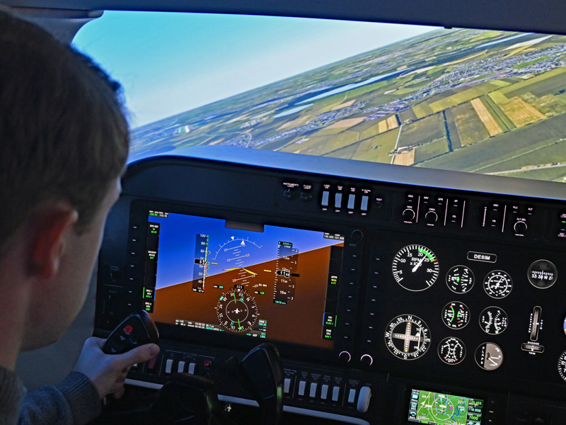 In der IFR-Ausbildung nutzen wir neben unseren IFR-zugelassenen Luftfahrzeugen mit dem AL250 von ALSIM einen hochmodernen Simulator. Die Simulator-Ausbildung ermöglicht es, komplexe Verfahren vorab am Boden zu trainieren ehe sie fliegerisch in der Luft erflogen werden. Der Simulator bietet den Vorteil, Trainingsinhalte in angemessenem Tempo studieren zu können und erlaut es, zur Erläuterung & Diskussion den Flug virtuell anzuhalten. Für einen effizienten Lernfortschritt sind die in der IFR-Ausbildung anrechenbaren Flugstunden im Simulator unerlässlich und gleichzeitig eine kosteneffiziente Ergänzung auf dem Weg zur IFR-Lizenz.